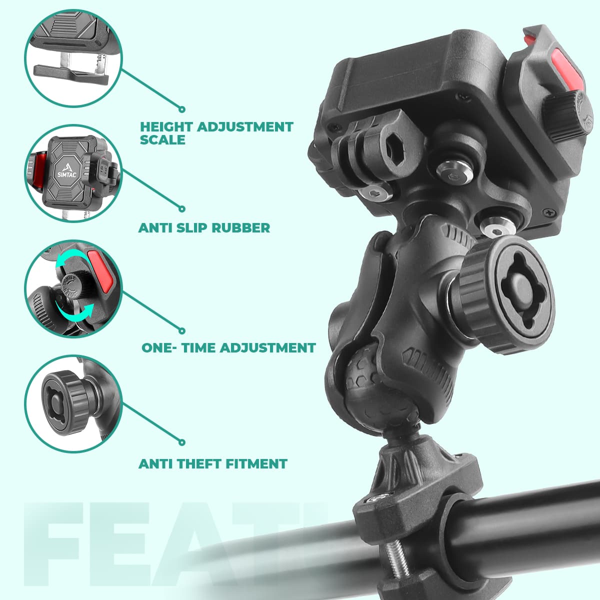 The QUICK LOCK SUPER GRIP PRO+ delivers professional-grade phone mounting with advanced vibration damping technology. Its Quick Lock mechanism ensures secure, one-handed attachment while the Super Grip pads maintain a firm hold even on rough terrain. The rugged construction withstands demanding riding conditions, while 360° rotation lets you position your device at any angle. Vibration protection safeguards your phone during high-speed rides and uneven surfaces. Includes handle mount, Allen key, and comprehensive 1-year warranty for complete peace of mind.